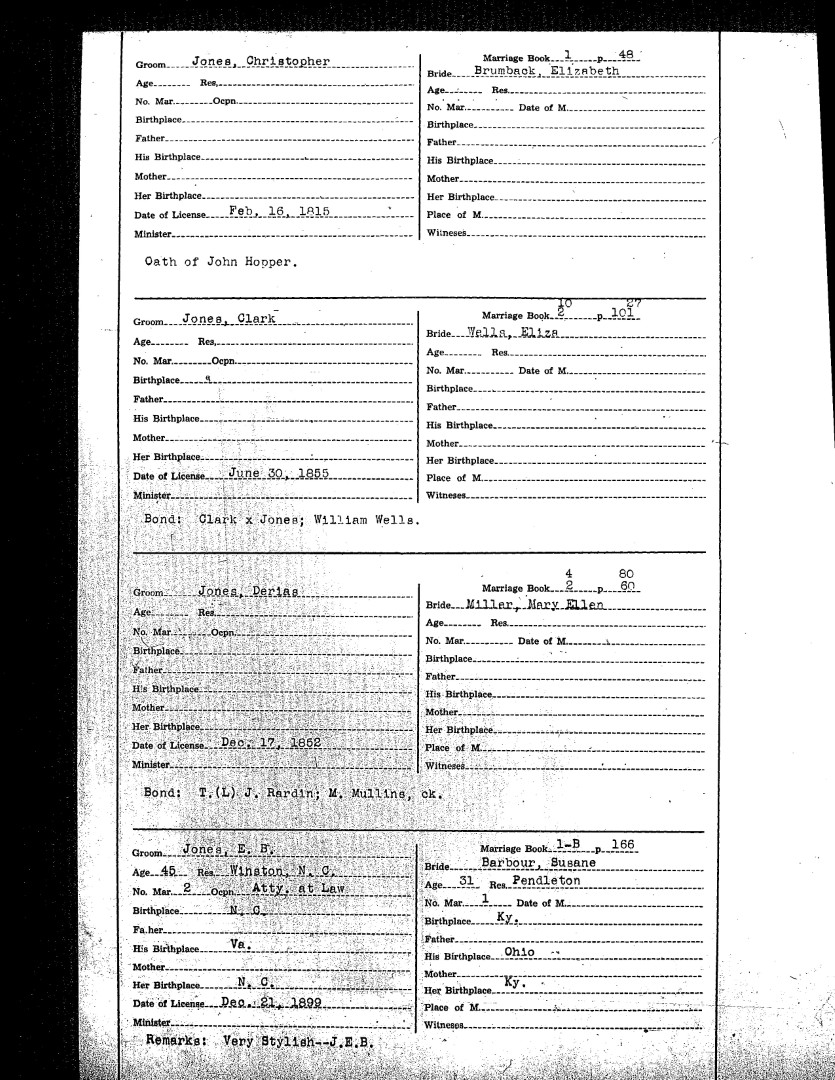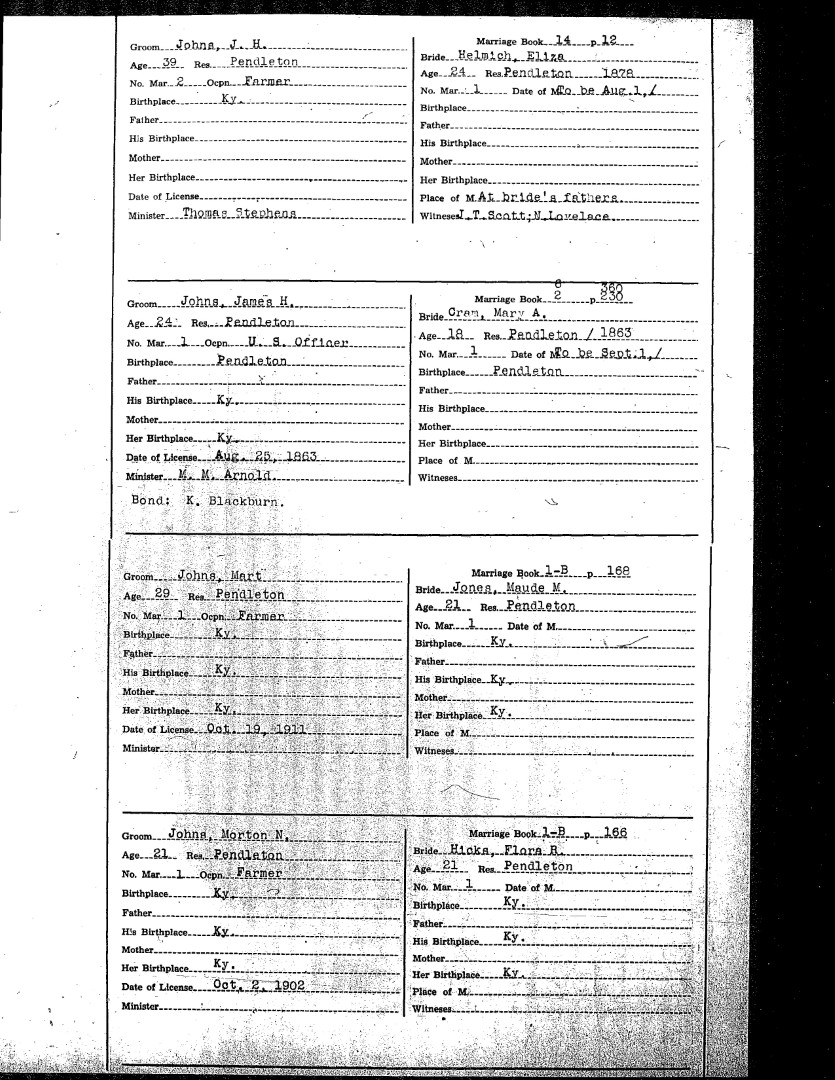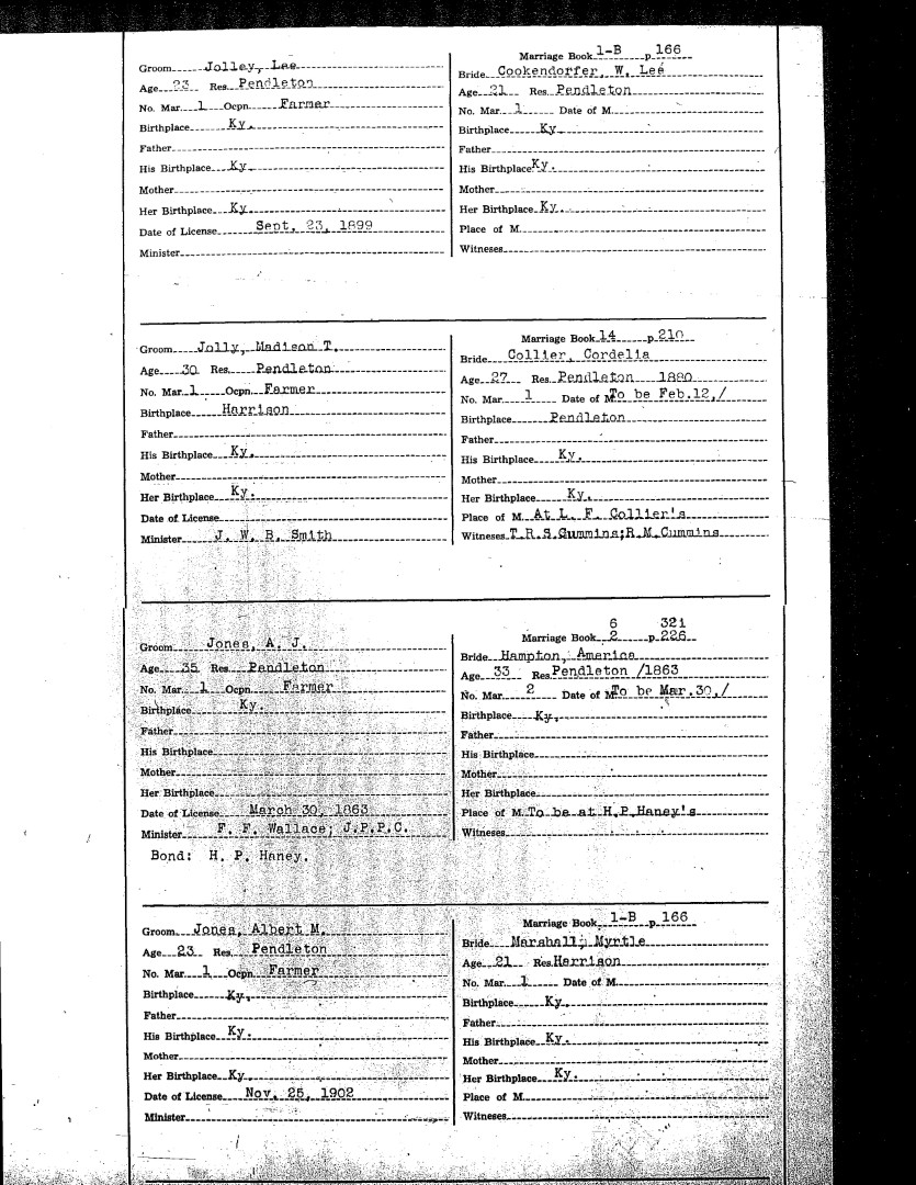 Pendleton County Marriages