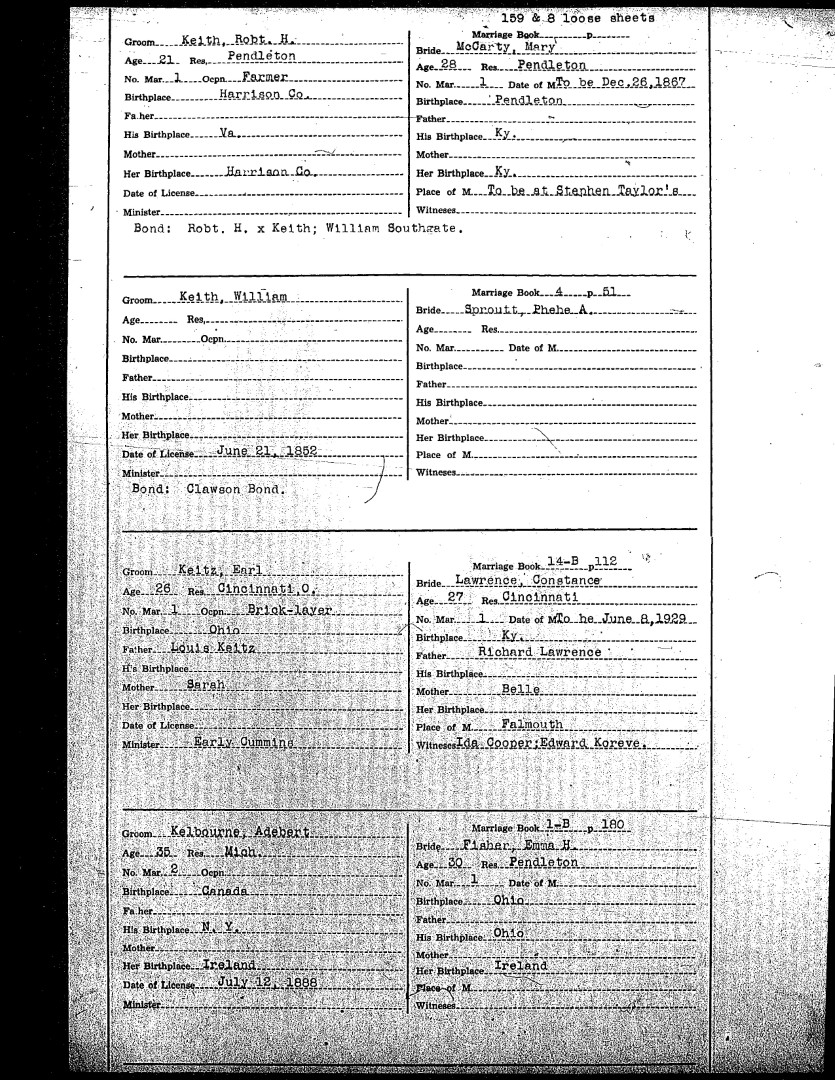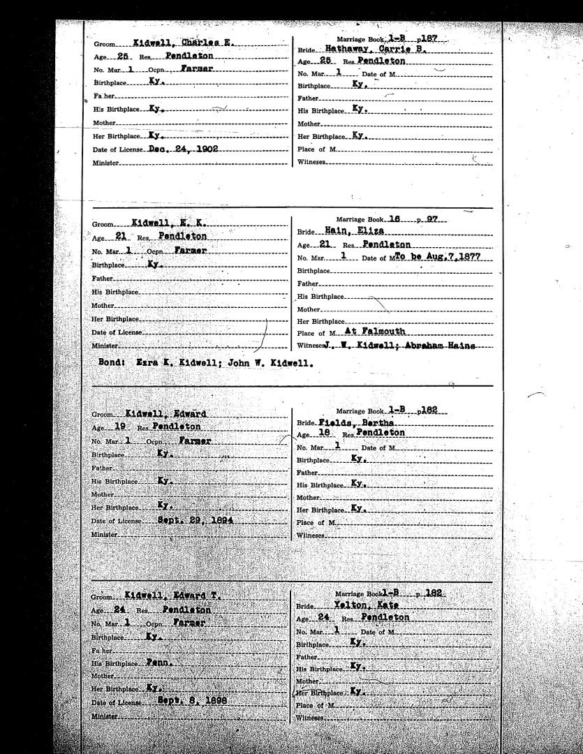 Pendleton County Marriages