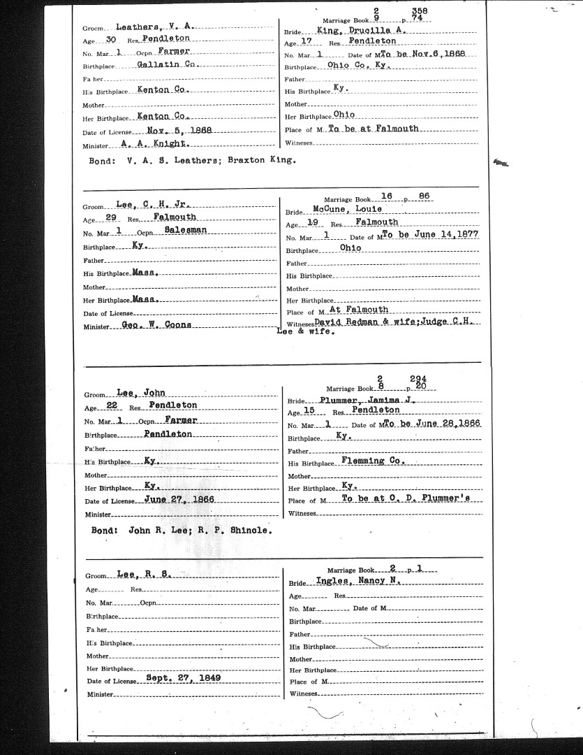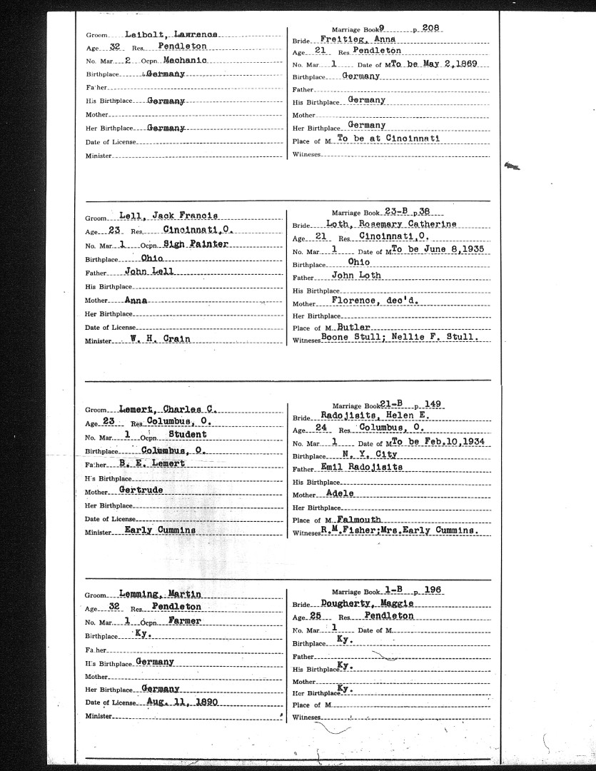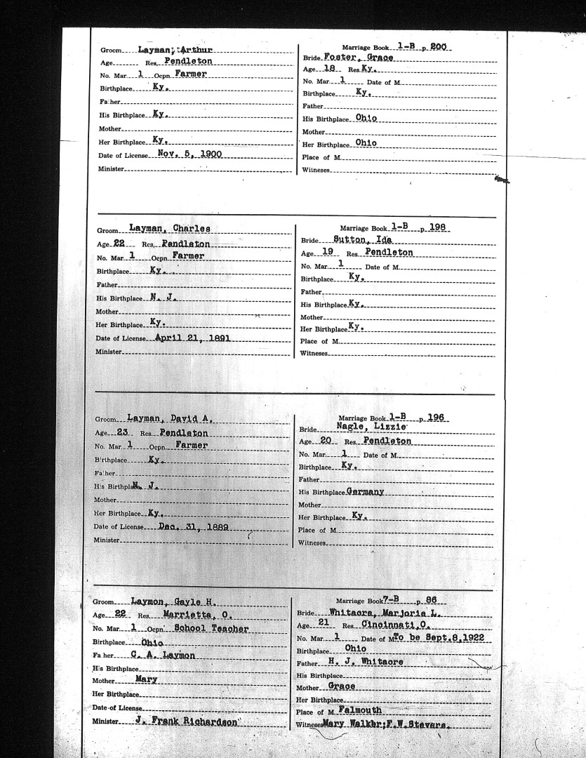 Pendleton County Marriages