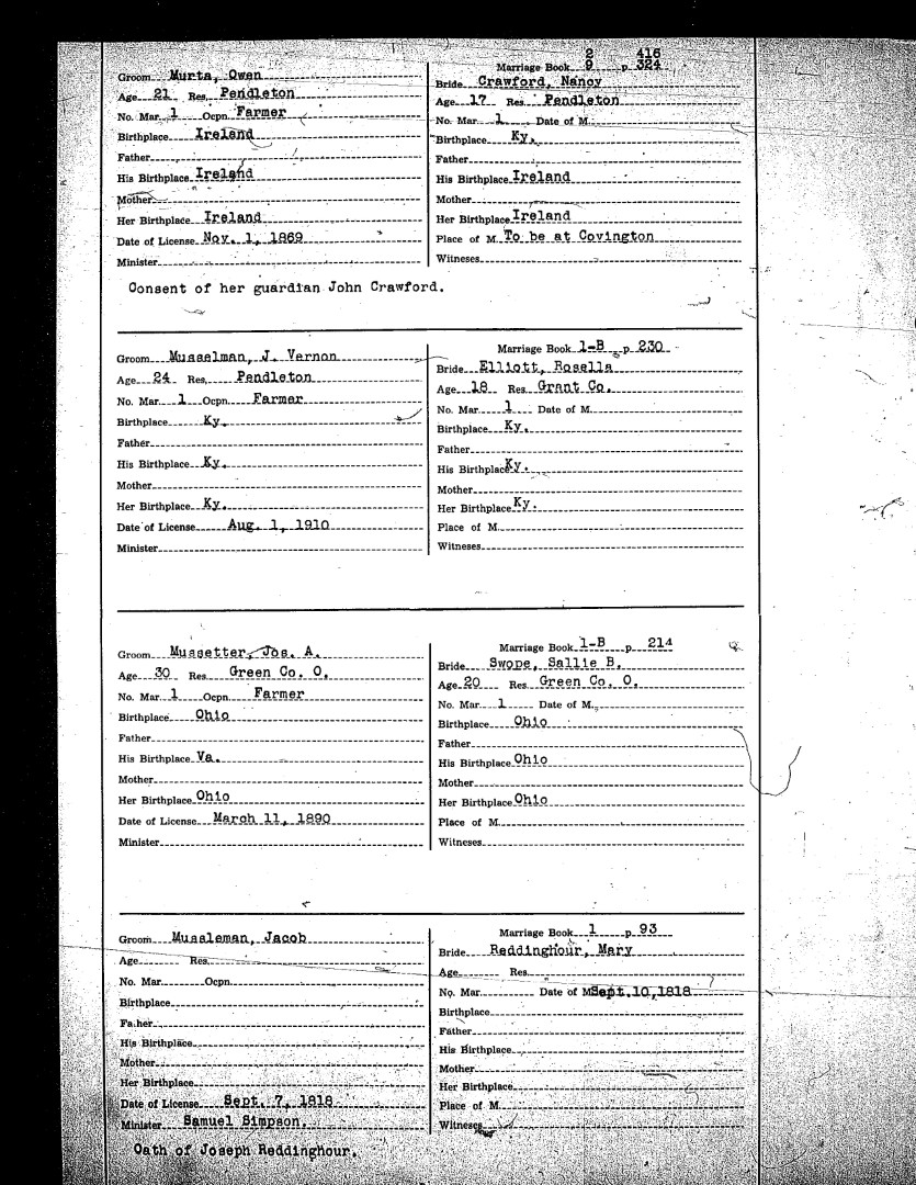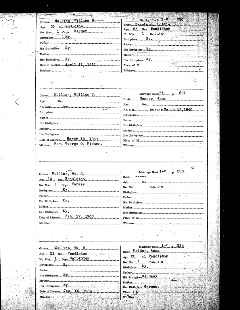 Pendleton County Marriages