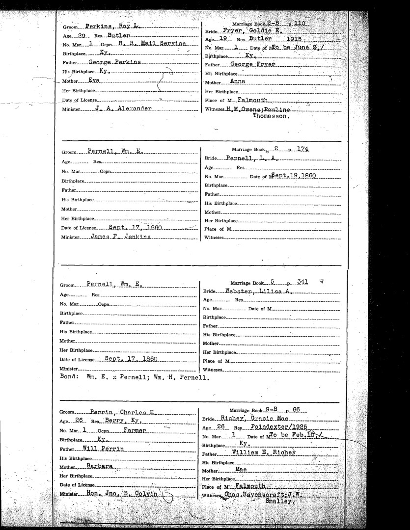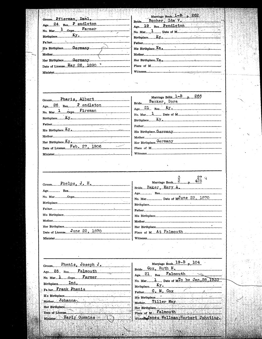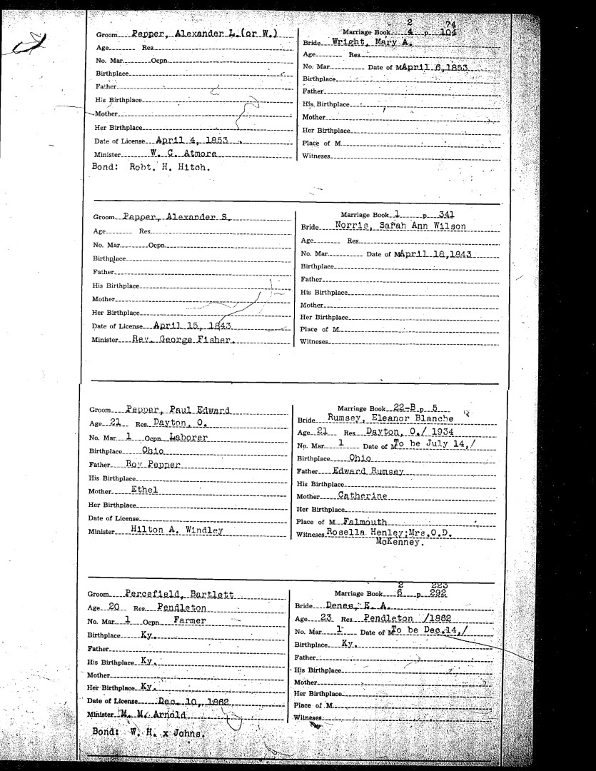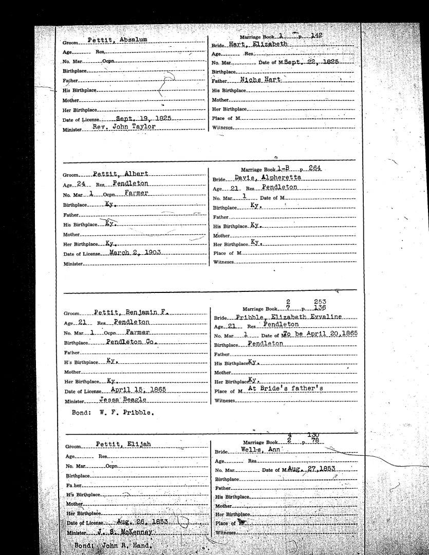 Pendleton County Marriages