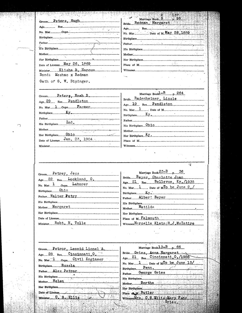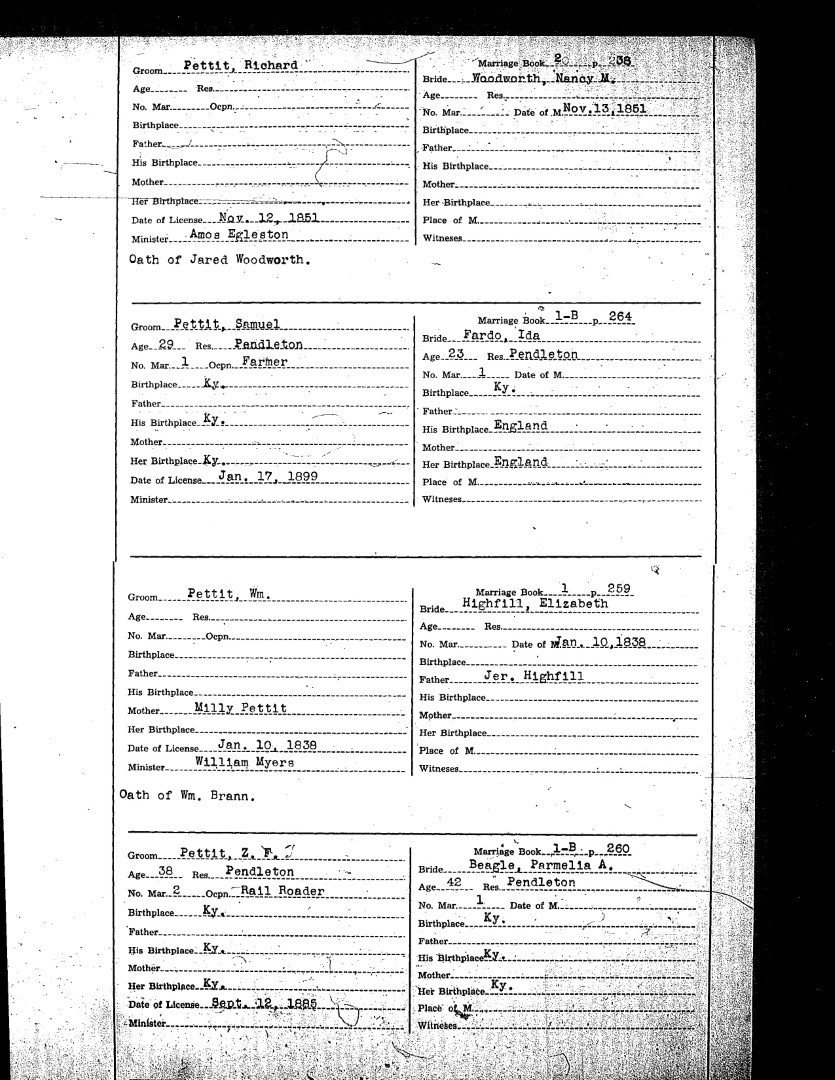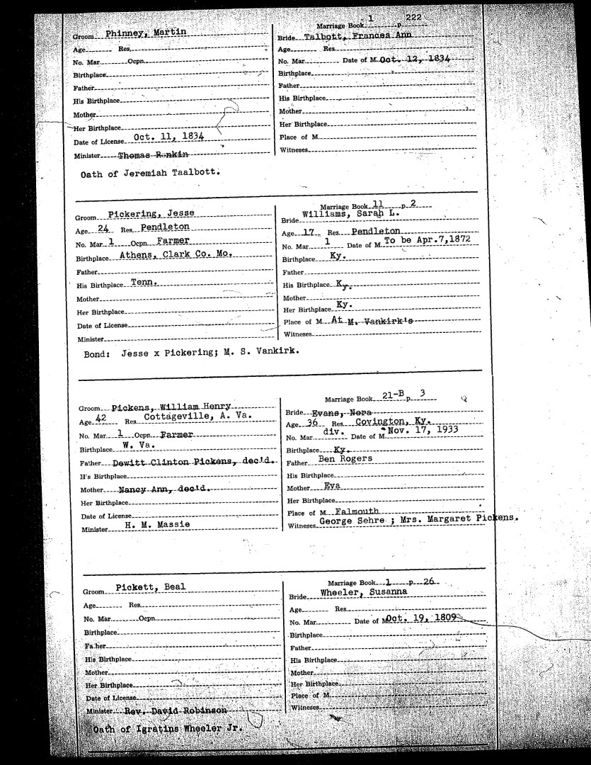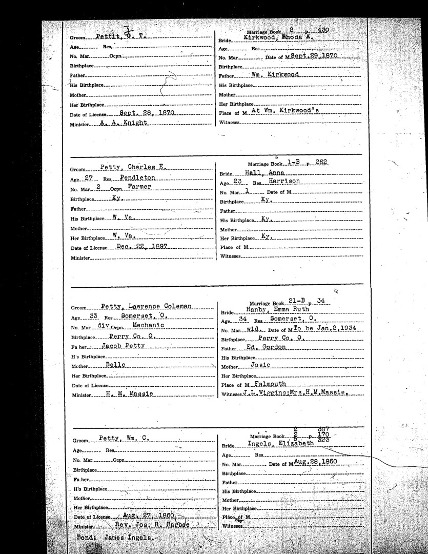 Pendleton County Marriages