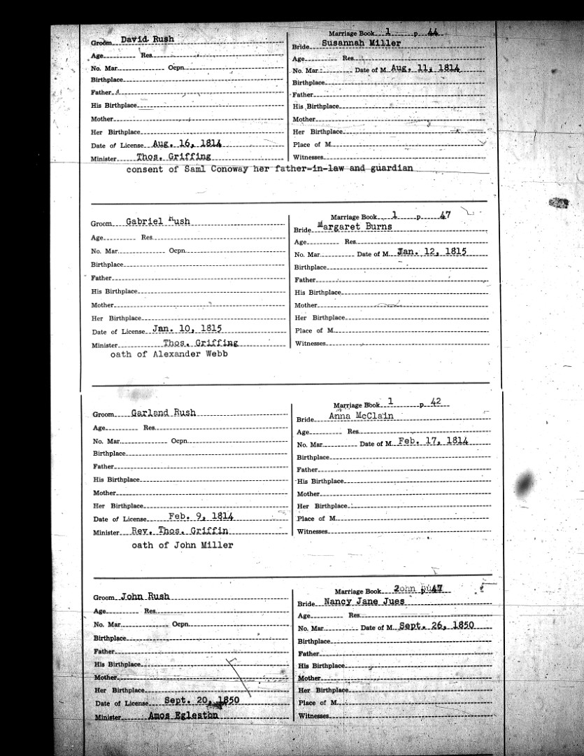 Pendleton County Marriages