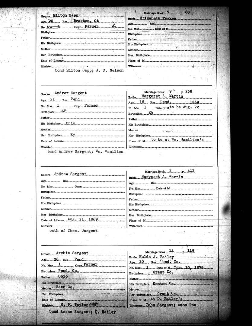 Pendleton County Marriages