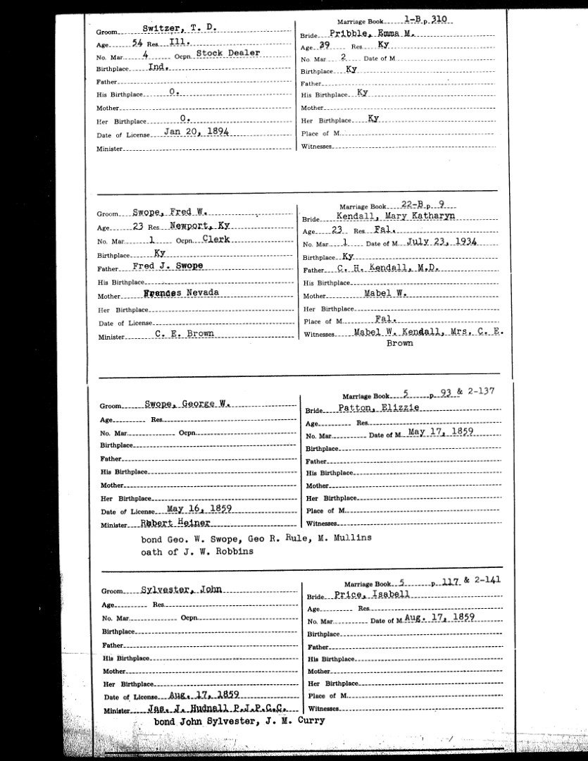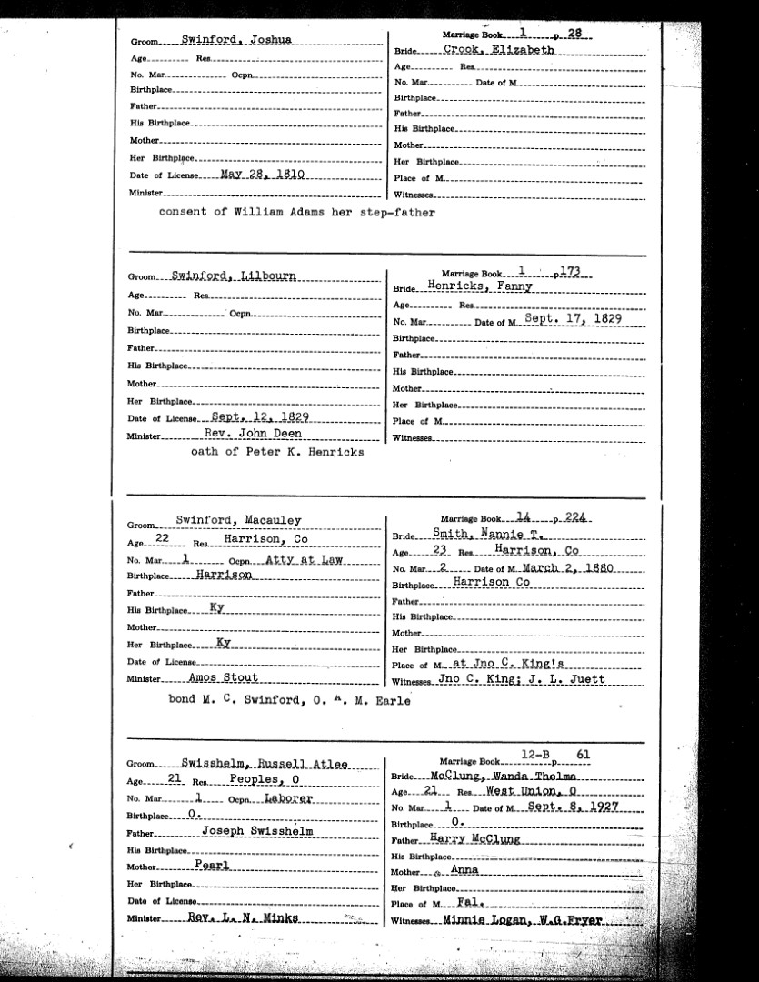 Pendleton County Marriages