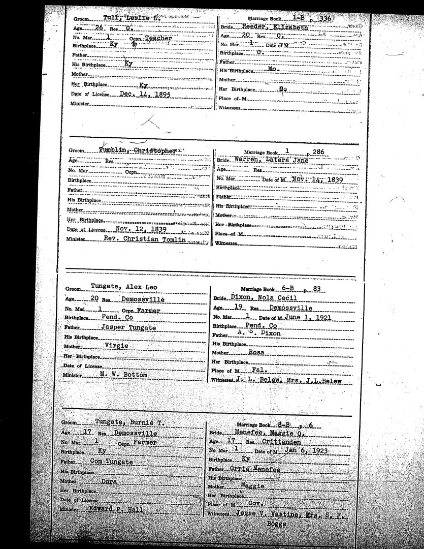 Pendleton County Marriages