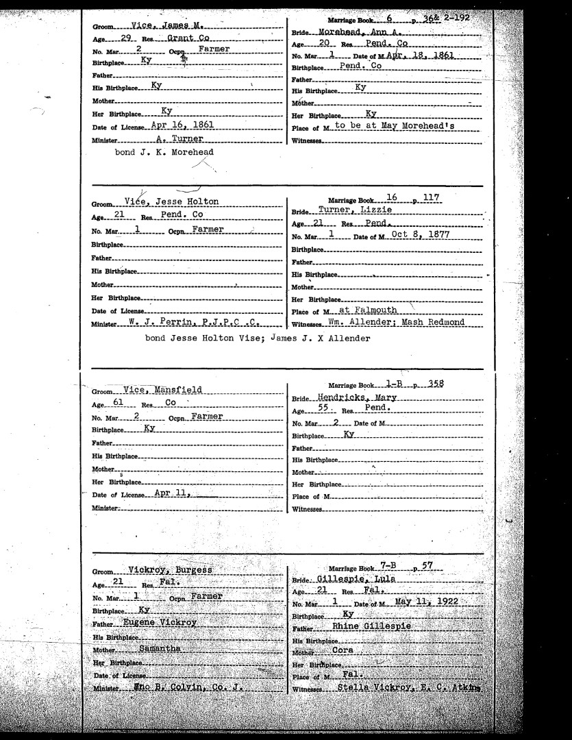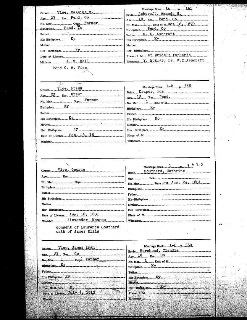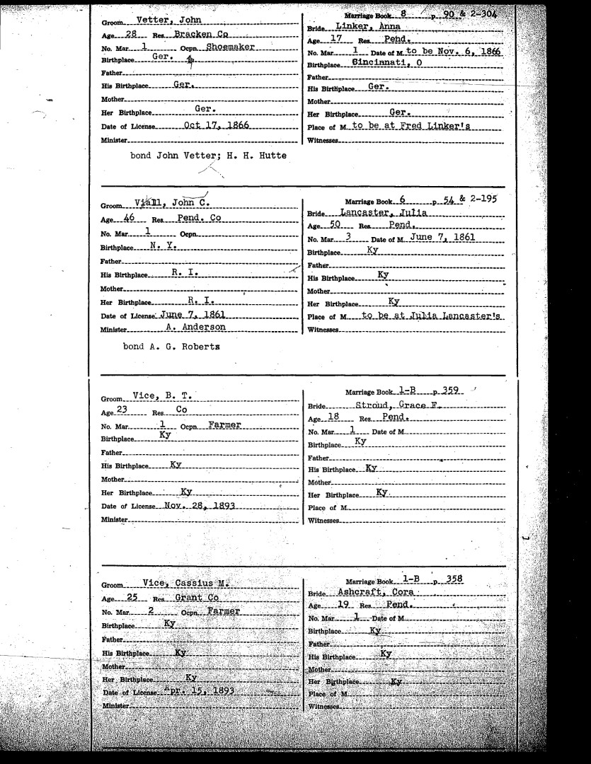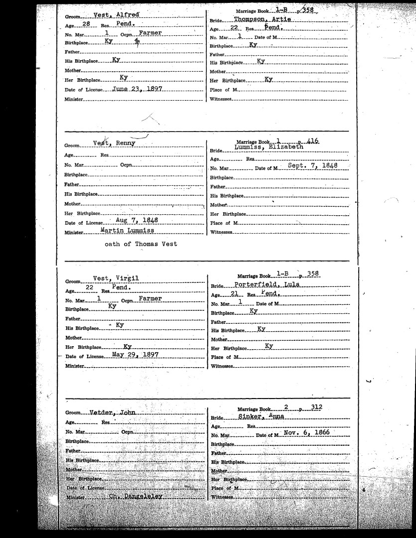 Pendleton County Marriages