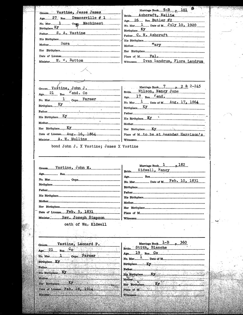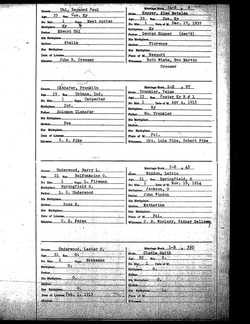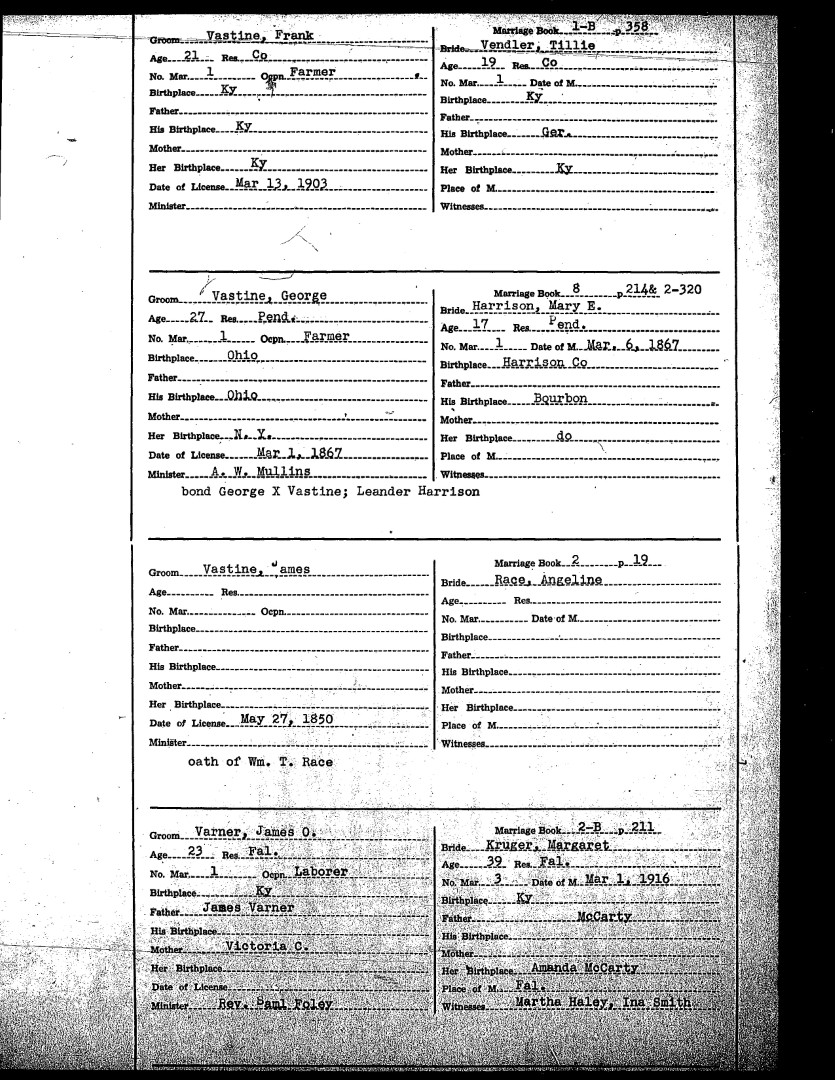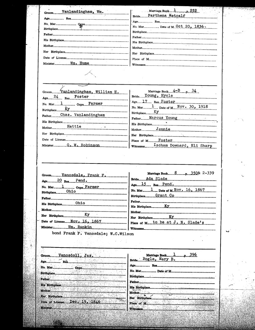 Pendleton County Marriages