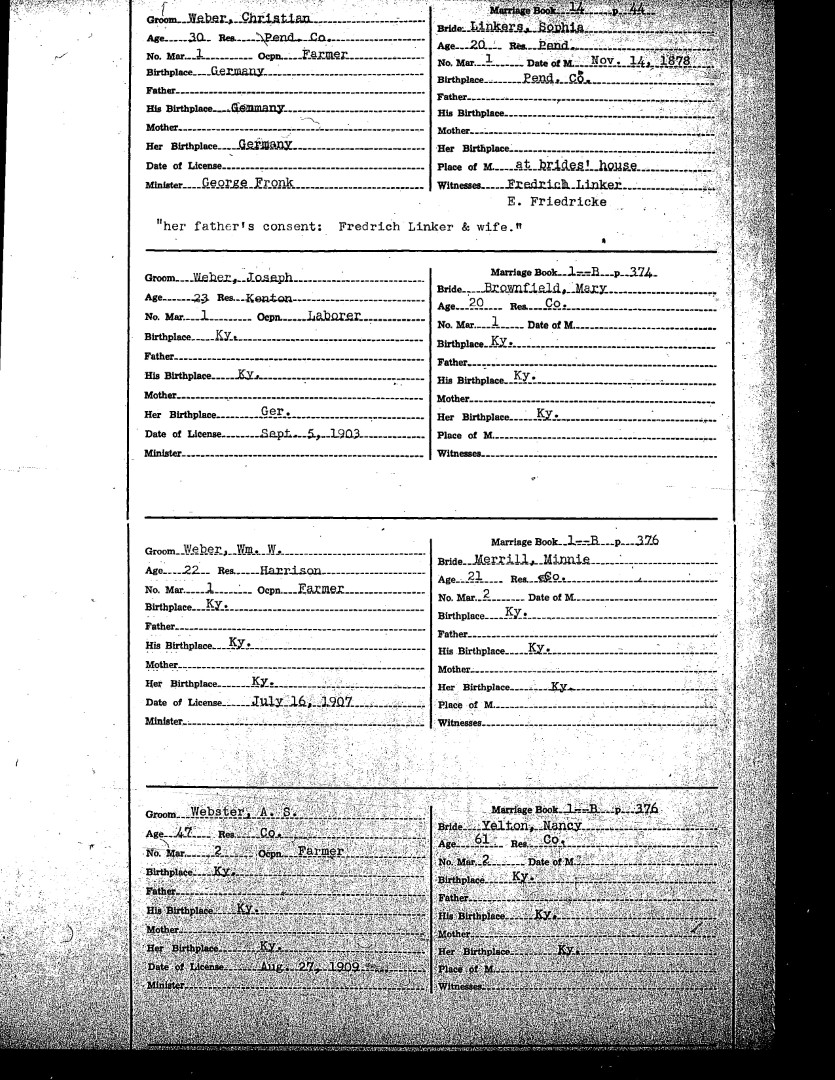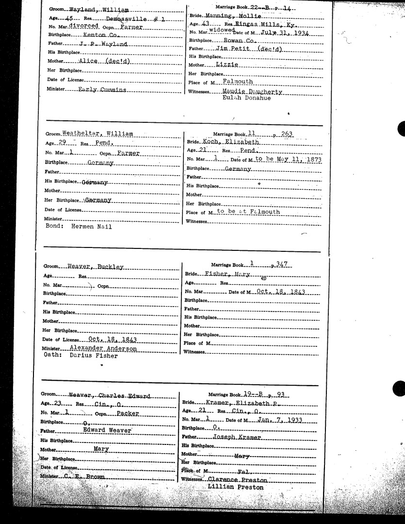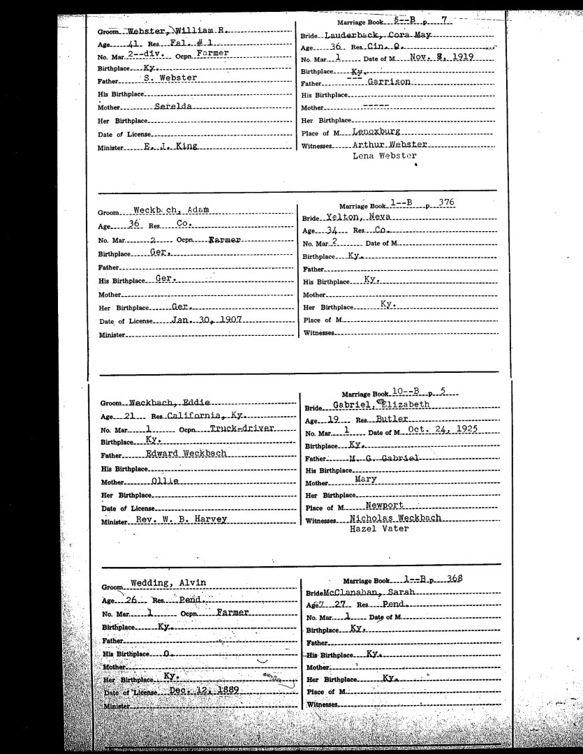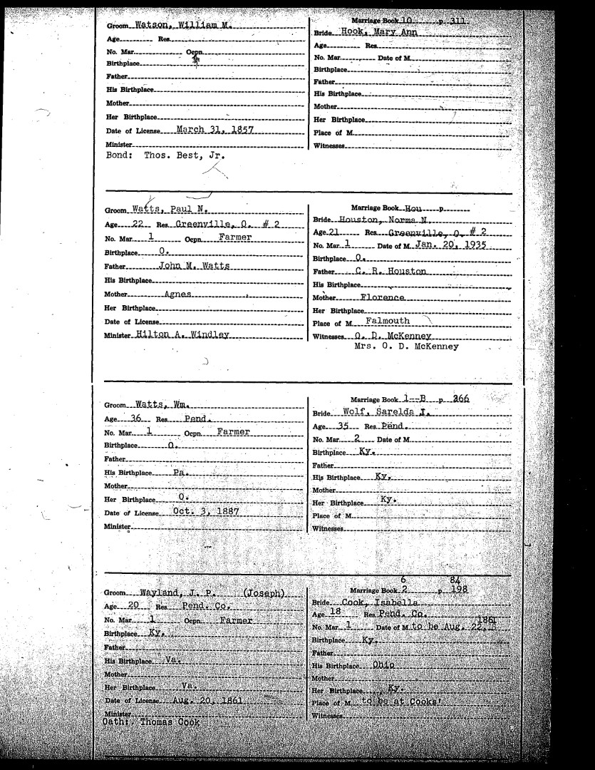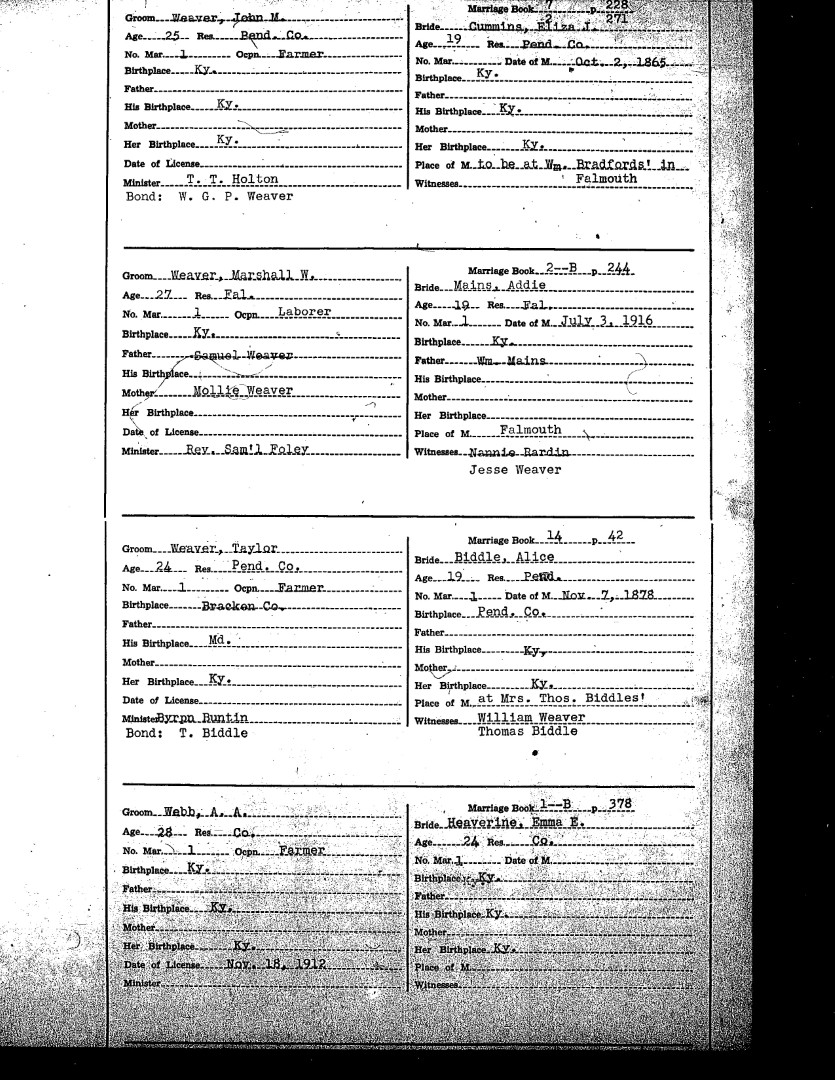 Pendleton County Marriages