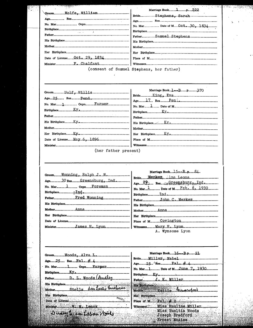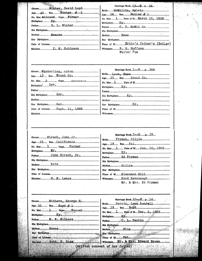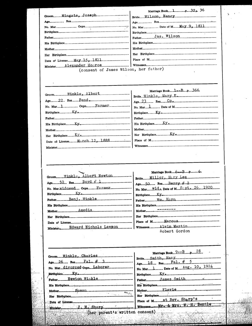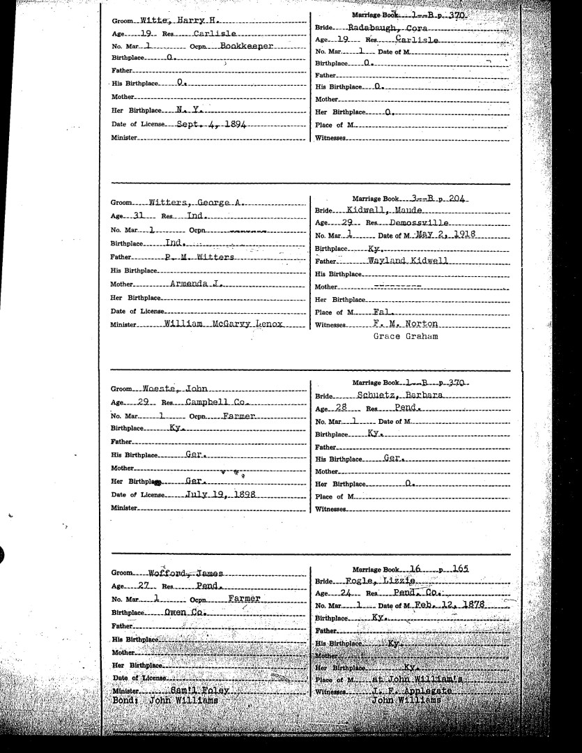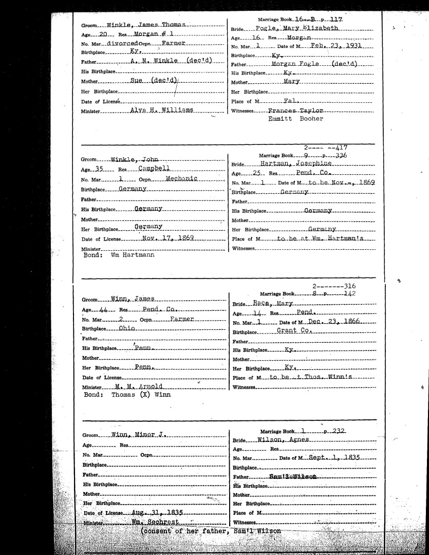 Pendleton County Marriages