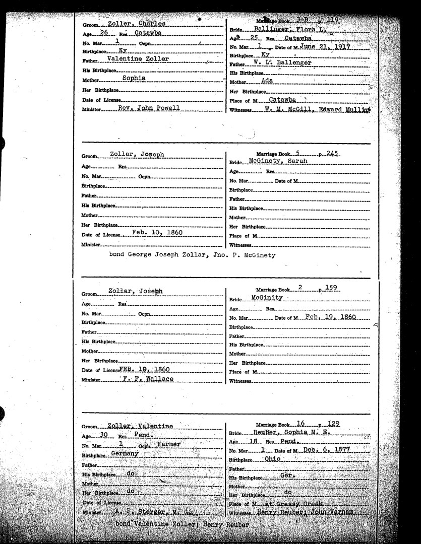 Pendleton County Marriages