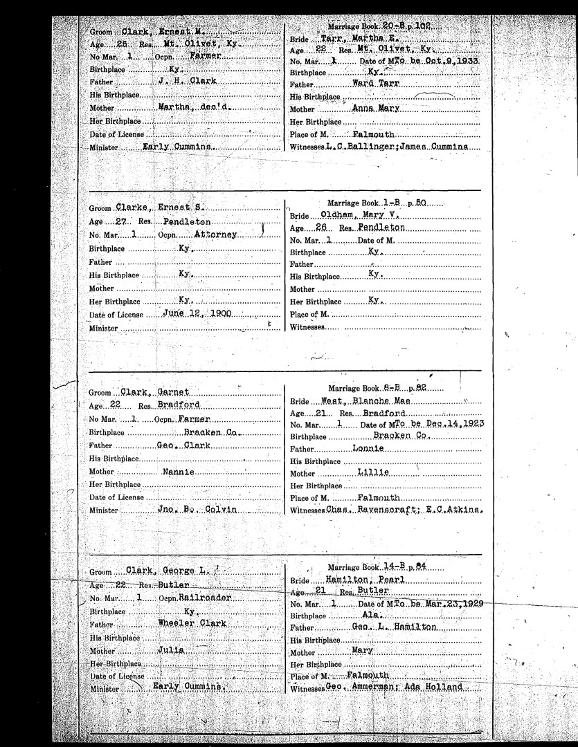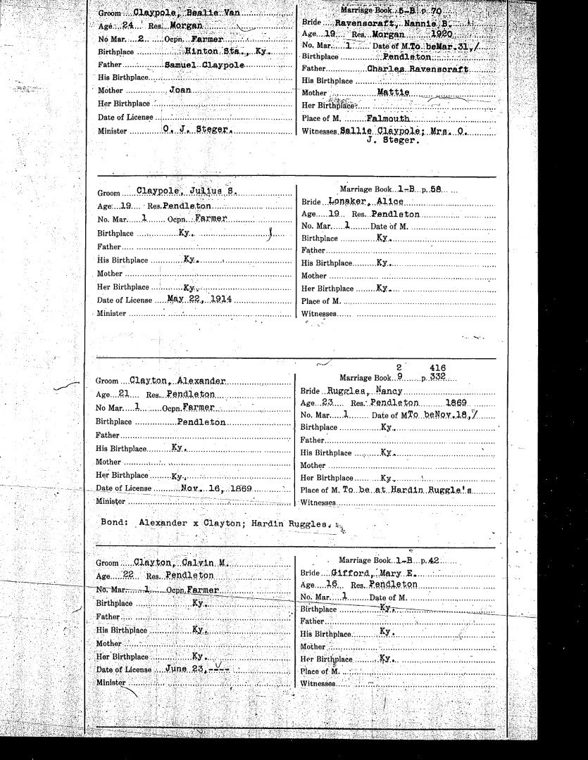 Pendleton County Marriages