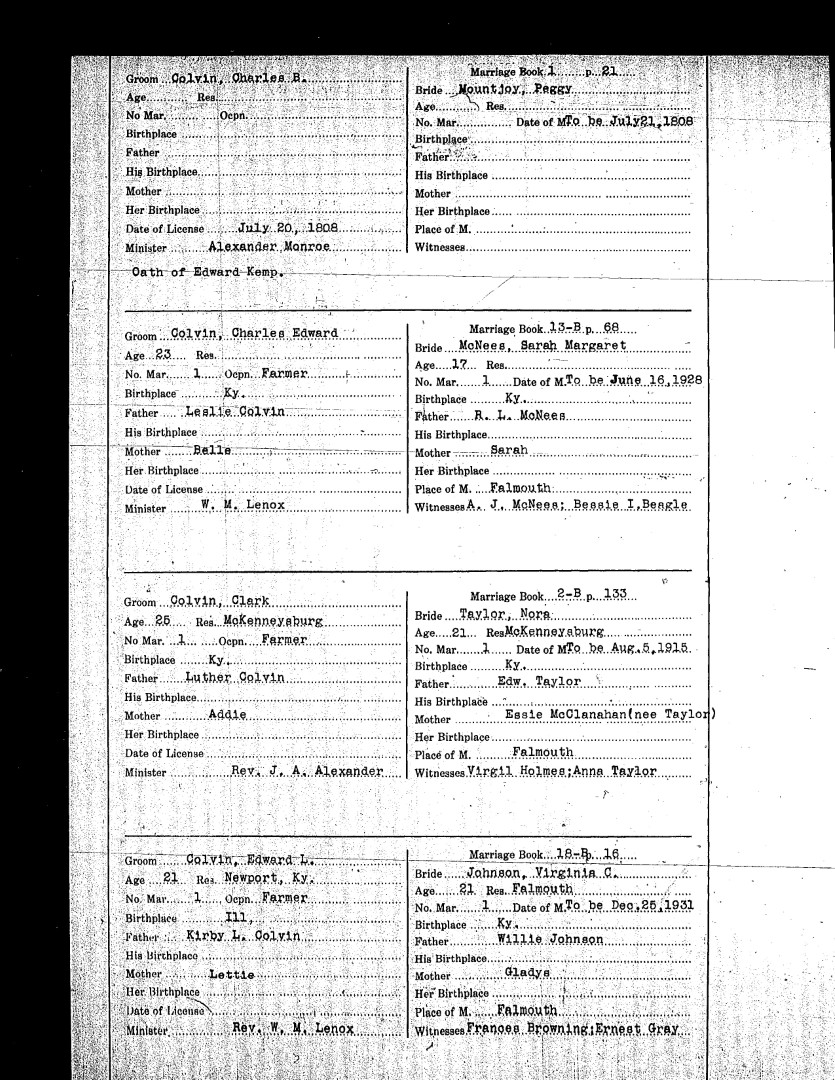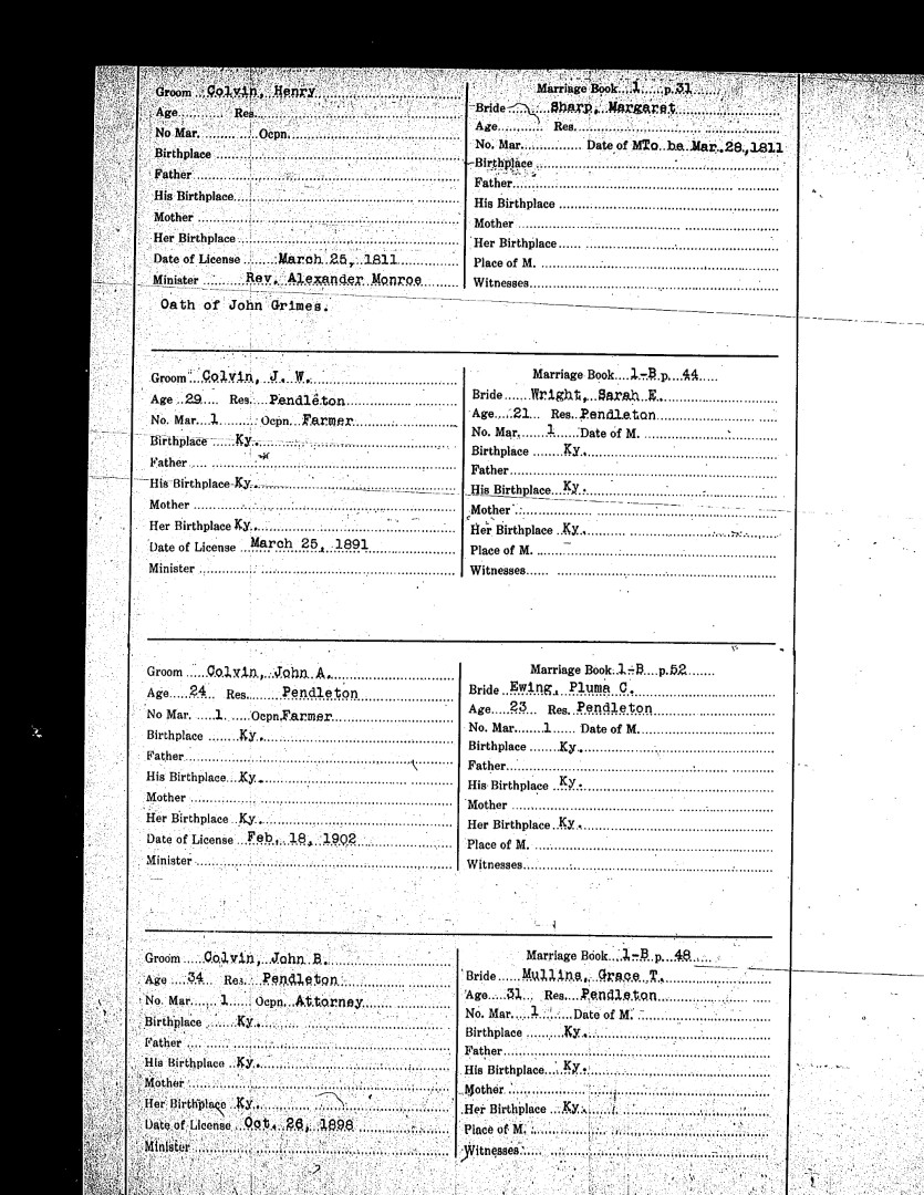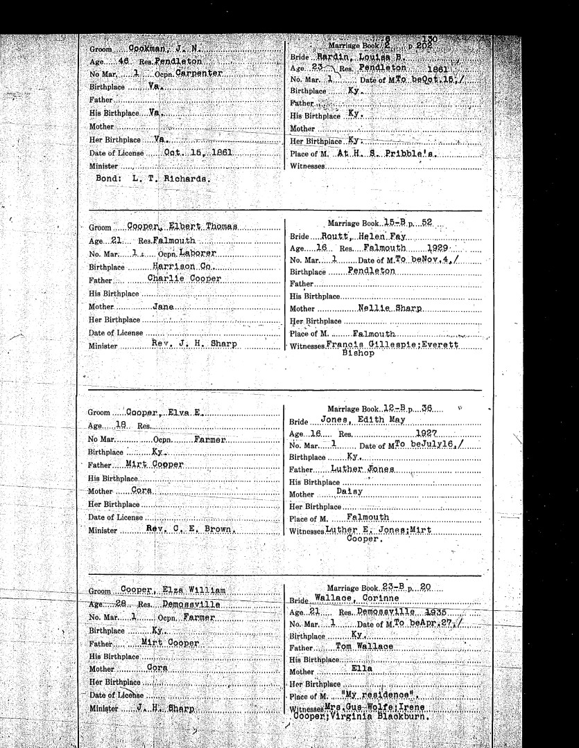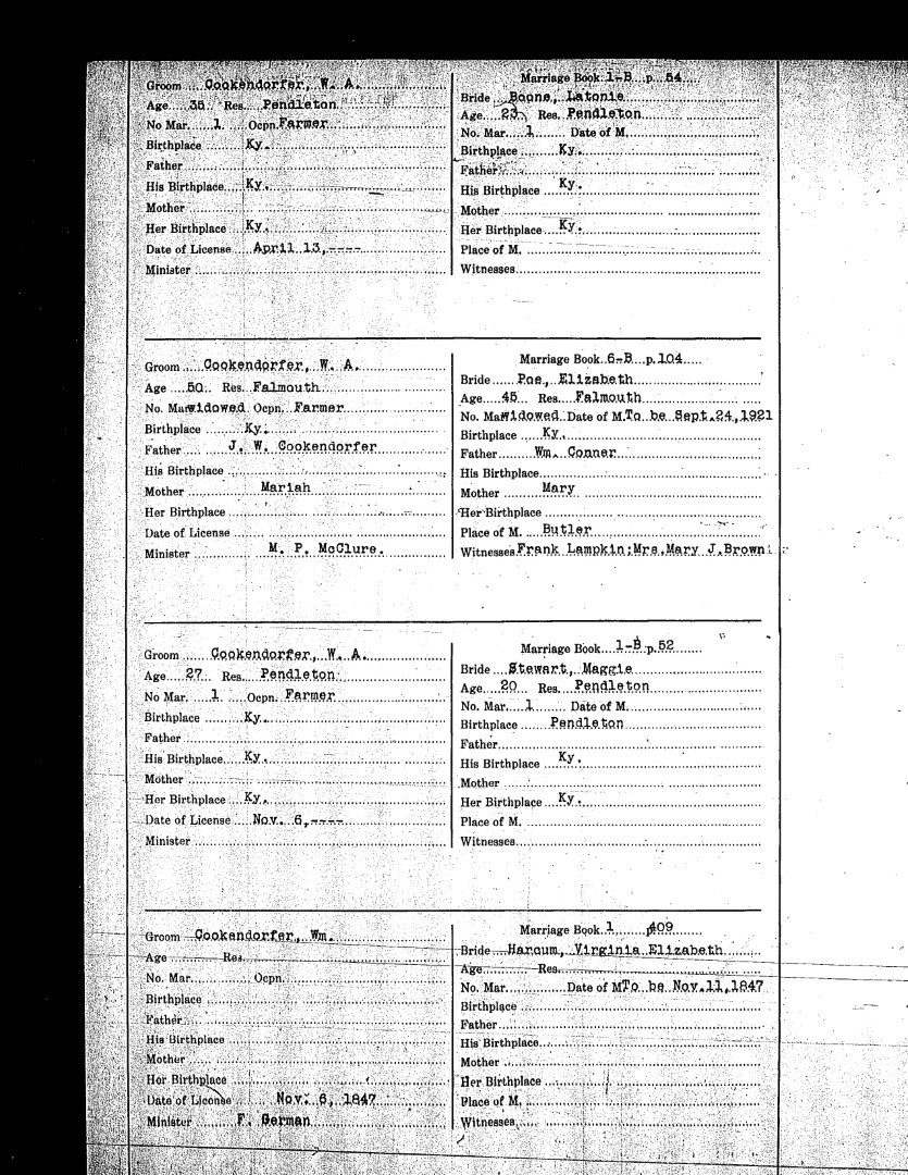 Pendleton County Marriages