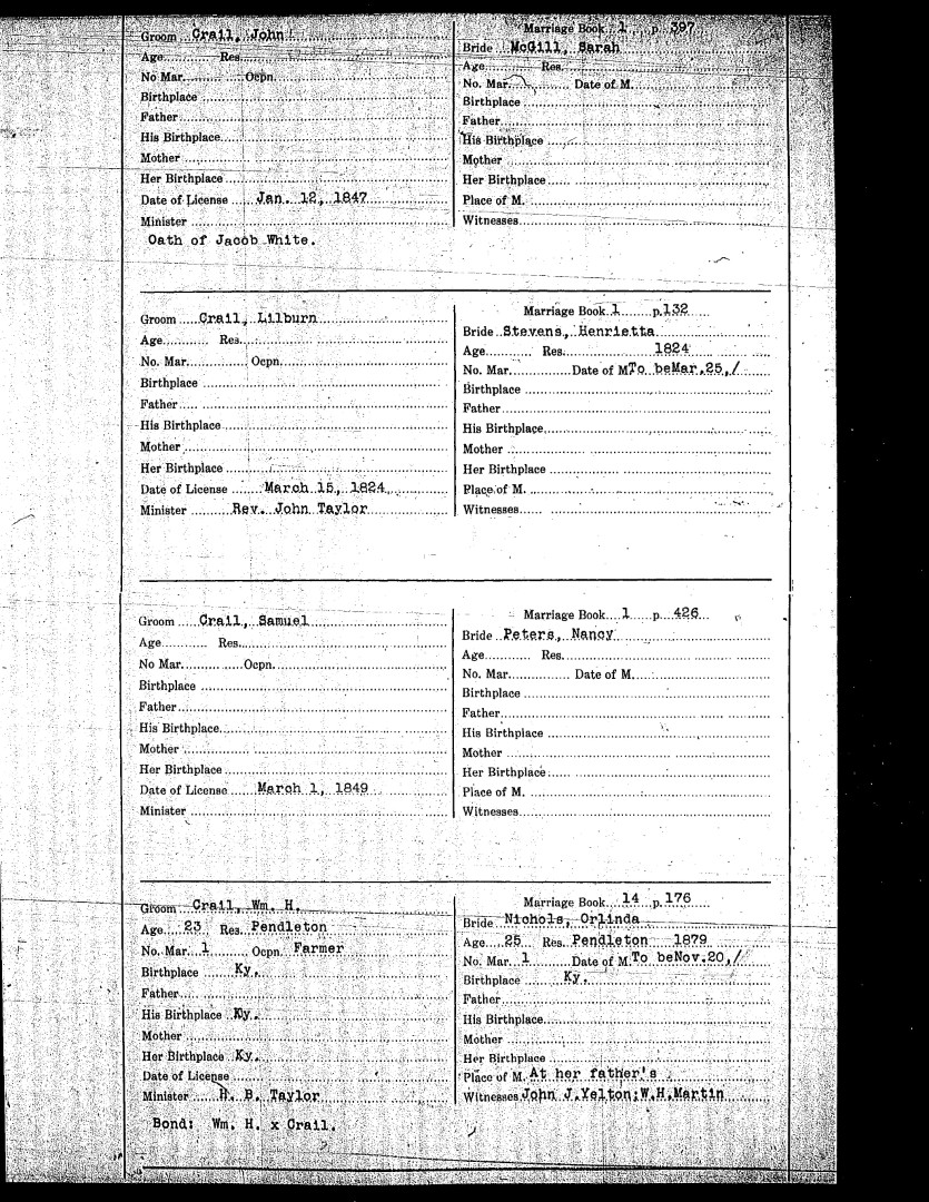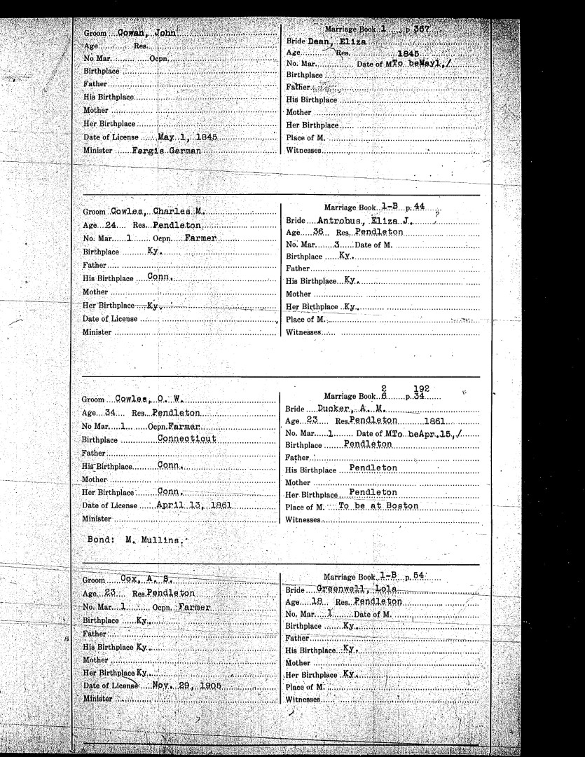 Pendleton County Marriages