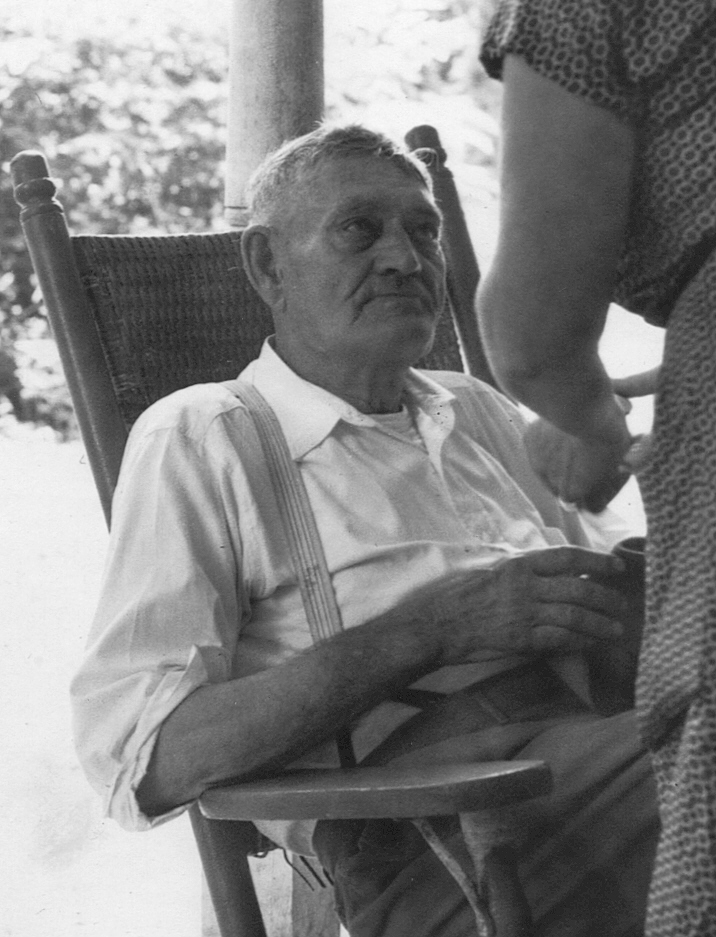 Alley M. KingTaken on the front porch of Flossie King Hall's house, Washington St., Stanton, Powell County, Kentucky. (arm belongs to his daughter Bertha King Campbell)