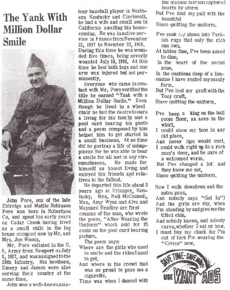 WWI soldiers, Reeves, Vanhook & Louderback families, Biog. of John Zoller, Dr. P. Duncan, Dr. Thompson.