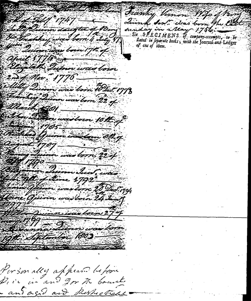 Elizabeth born Nov. 2, 1776, Milly born Dec. 18, 1778, Franky born Mar 22,