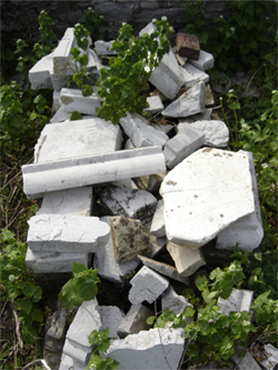 broken and crumbled