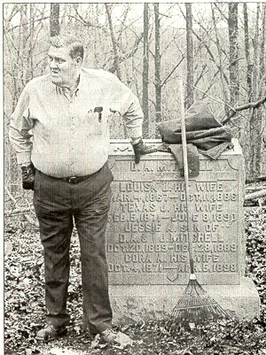 Bobby Hudson, Lyon County co-chairman of the Between the Rivers Preservation Organization, stands near the largest headstone at the Chambers Cemetery, one of more than 220 cemeteries in the Land Between the Lakes area. Hudson's health prevents him from too much exertion at the cemeteries, but he is heavily involved in the project.