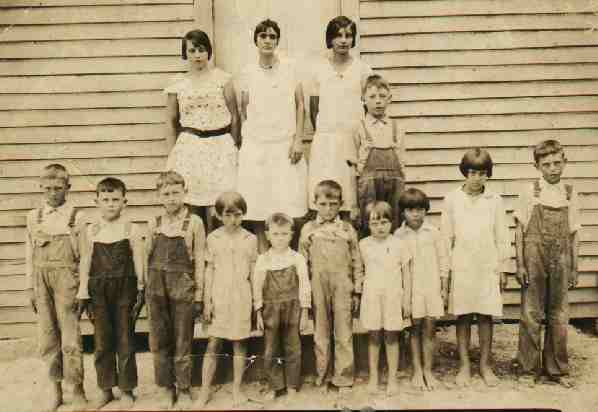 NELLIE FUTRELL, JOHN FUTRELL, DOROTHY DUNN, FRANK WOLF (TEACHER) BURNETT PORTER, JR., LOIS EZELL, ROBERT KNIGHT, AND MARY LOU EZELLSECOND ROW L TO R: