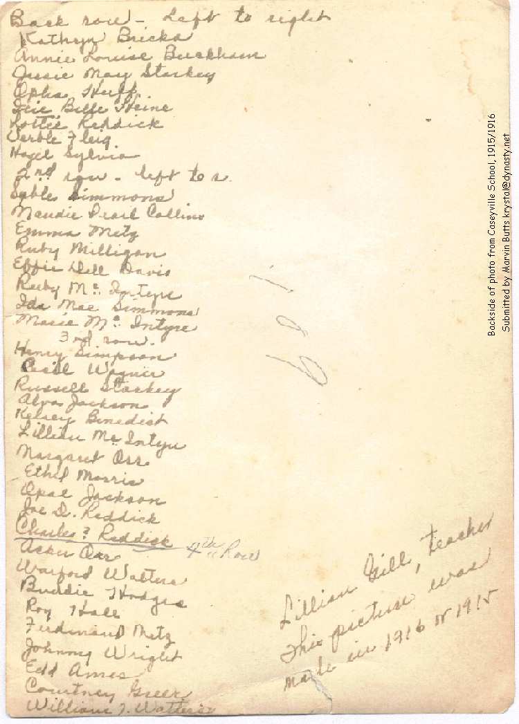Handwritten names on back