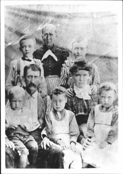 This is a pic of Shird and Nancy Delphia Isbell Bryant and family. Back row L to R: James Edmond Bryant, Thomas Ezra Bryant,. Front row L to R: Shird Bryant, Andy Granville Bryant, Nancy Delphia Isbell Bryant holding William Franklin (Frank) Bryant. This pic was taken about 1900. Shird is the second child of James and Eliza Bryant. |