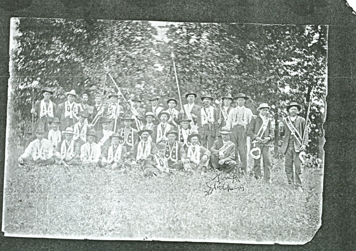 April 26 has been a day long looked for in the local branches of the I.O.O.F. On this day the 86th celebration of the birth of the order was to be observed, and Hazel Green Lodge No. 167 was to be the hostess of all the lodges in the surrounding country. In the early morning of the great day showers of rain threatened to keep many of the guests away, but as the hours rolled on the clouds were dispersed and the visitors began to gather in large numbers. About 10 o�clock all was in readiness at the hall, but as yet no sight of the Campton delegation had been reported. The band from West Liberty was present, and well prepared to lead the way. Finally the Campton brothers, headed by the genial Greenberry Stamper, came in, and the line was quickly formed. Bro. Reynolds was unanimously elected Marshall, and at once proceeded to arrange the ranks. Following the band came the local lodge, which was represented by a large majority of its membership; close behind the locals came the representatives from Campton, West Liberty, Frenchburg, Caney, Lee City, Ezel, Maytown, and other lodges. After a parade through the principal streets the line of march was broken at the grove, where a large concourse of people had gathered. Noble Grand Clay Lacy, of Hazel Green Lodge, in some very appropriate introductory remarks introduced the speakers and announced the day�s program. The opening address was made by Prof. G. W. Woodbury, who welcomed the assembled brothers and friends to the hospitality of Hazel Green. He was followed by a response from Greenberry Stamper, of Lykins Lodge No. 305, of Campton. Mr. Stamper spoke feelingly and well concerning the reputation for hospitality long held by Hazel Green, and thanked the local brothers for this, another tribute of their good will. Dr. Center, Warden in the local lodge and Chairman of the Committee on Arrangements, then gave a hearty invitation to all present to share in the dinner, which should be prepared while the line of march was being reformed. Upon return of the paraders dinner was ready. Bro. Williams, a Past Grand in the order and a hustling member of the local committee, pronounced the blessing and started the feasting. A great abundance of good things had been prepared by Bro. Townsend and his helpers, all of which was greatly appreciated, as the ready disappearance of hog, sheep, chicken, etc., etc., soon testified. A heavy shower of rain drove the large crowd into the school-house, blacksmith shop, etc., soon after dinner. The band enlivened the wait between the dinner hour and the time of speaking by rendering a fine selection of patriotic and sentimental airs. When the sun reappeared all repaired to the grove, where the Noble Grand again took up the task of introducing the speakers. Bro. Ben Sewell, of the Campton Lodge, made an eloquent address on Odd Fellowship. So touching was his appeal for the order that his hearers were moved to tears. At the conclusion of his address Bro. L. T. Hovermale of the Frenchburg Lodge, spoke on the subject, �What an Odd-Fellowship Is Not.� His remarks were very pointed, very witty, and very well received. Bro. Greenberry Stamper closed the speaking by a few well chosen remarks on the aims and purposes of the order, and the time of adjournment was at hand. Many thanks are due the Committee on Arrangements for the splendid manner in which all things were conducted. A word of approval should also be given the West Liberty band for their good music and for their show of patience upon being obliged to wait so long for the visitors. The popular verdict from all concerned was: A Hearty good tie, good music, a good dinner, good speaking and a good Order to join. In the photo, below one man is written "Grandpa Stidham." The reference is to William Floyd Stidham, born Wolfe Co. 1876, died 1954 in Lincoln Co. OK. It's his family who supplied the photo. The article comes the Hazel Green Herald, 27 April 1905. - donation by Wayne Pounds