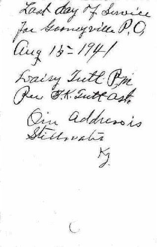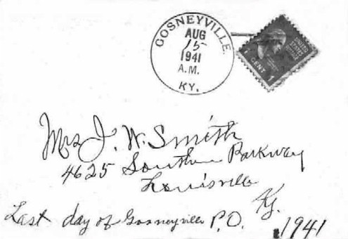 The last piece of mail to leave the Gosneyville, Ky. Post Office.