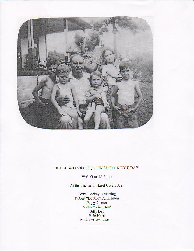 According to another family member, Billy Day is Billy Eugene Day, son of Mae and Orville Day. Bill lives in Frankfort, Kentucky at the time of this update (August 2007). He taught a the Hazel Green Academy. He now owns a car business in Frankfort, Kentucky. His mother lives in Wolfe County. After Orville Day died she later married Woodrow Fugate and they live in the old Noble home on Hwy 1010.