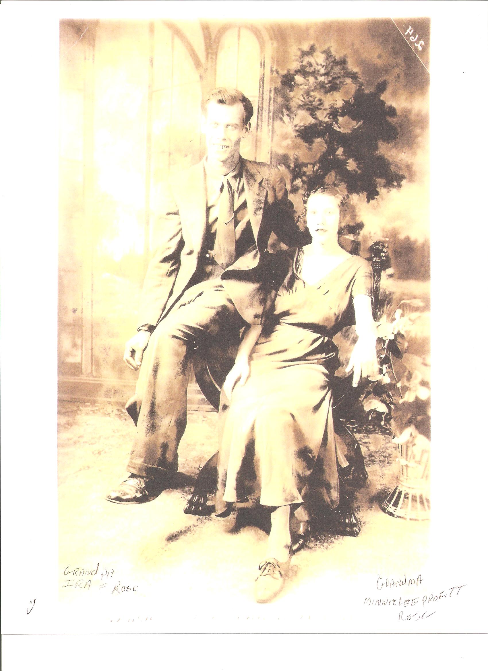 This picture was taken in 1929. Ira F. Rose and his wife Minnie Lee.