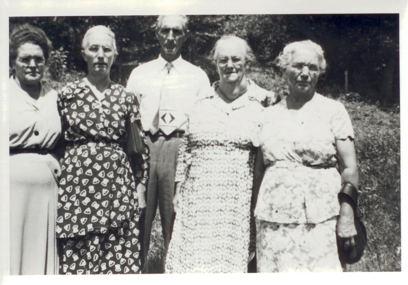 Pictured are several Vancleves. From Left to Right: Esther Vancleve Dunn, Pearl Vancleve Gevedon, Roland Vancleve, Katherine Vancleve Tyra, Ellen Vancleve Pence.