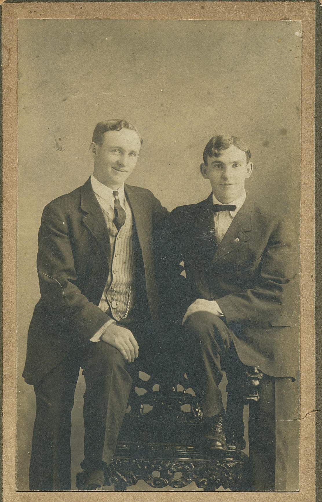 Pictured are brothers Claude Buckner Swango and Noah Bruce Swango. They were the sons of William Washington Swango (1861-1919) and Telitha E. Halsey (1866-1900). Claude was born in 1887, Maytown, Kentucky, and died in 1957, Coburg, Oregon. Noah was born in 1890, Valeria, Kentucky, and died in 1922, Eugene, Oregon.