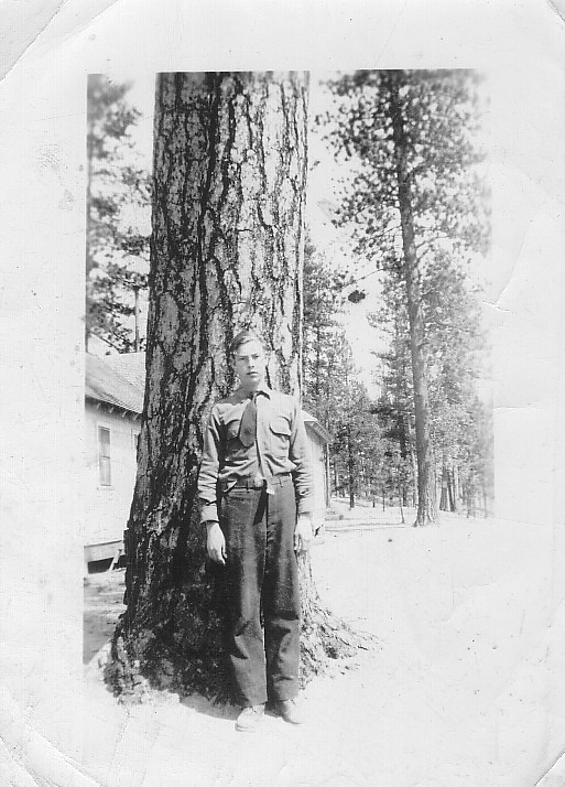 This is a picture of Ova Kenneth Spencer the son of HC and Ellar Spencer while he was stationed near Esticada Oregon on Mt. Hood. Kenneth and many other young men from this region joined the CCC's during the 1930's to help provide income for their families.
