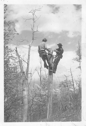 Pictured is Orba Spencer in the early 1930's while working as a lineman in Oregan for the CCC's. Orba is on the left.