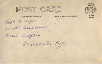 My Grandmother,   Bessie Lee Dolphin (1899 - 1935) (with arms behind her) and cousin, Dollis Dolphin of Winchester County, Kentucky Circa 1914   My grandmother was the daughter of Charles Michael Dolphin and Elizabeth Dale. She was born and raised in Campton and married my grandfather, Charles L. Bailey, in April 1914.   My grandmother died in Weirton, West Virginia of pneumonia at age 35.   Contributed by